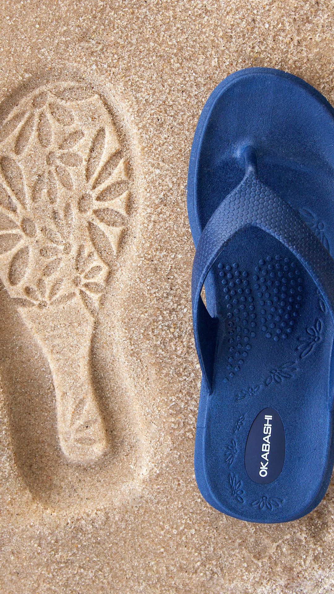 If it's our arch support, massage beads, elevated heal cup or snug fits, Okabashi's are inspired by the principles of reflexology. Using this understanding of your foot's anatomy we have created the most comfortable, supportive and reliable thongs, slides and sandals you will every put on your feet.